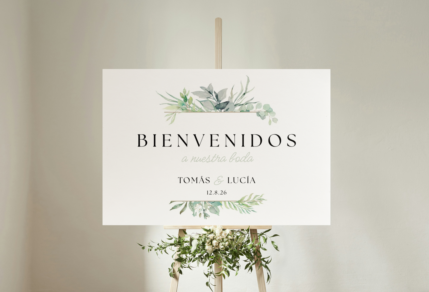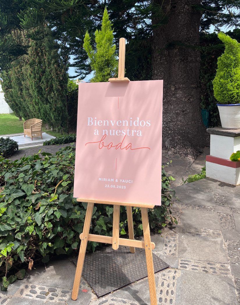 Recibe a tus invitados con un detalle bonito y cuidado gracias a este cartel de bienvenida impreso en cartón pluma rígido de 5 mm, perfecto para colocar en la entrada de tu boda o evento. Una forma elegante de marcar el inicio de una celebración especial.